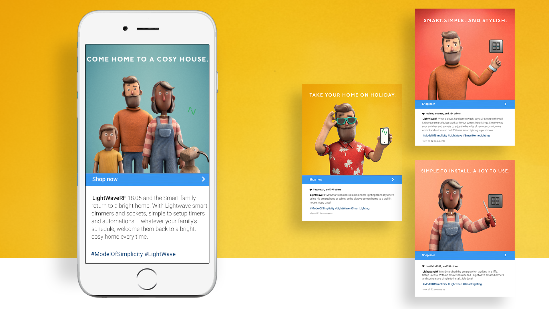 We wanted to create a campaign that captures the simplicity with which Lightwave products benefit daily life. Using the straightforward innocence of childhood animations provided an adaptable way to do this, and so the Smart family was born.